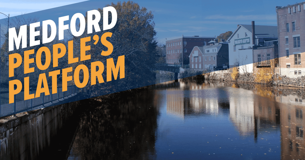 Our coalition of candidates, elected officials, residents, and local community groups envisions an inclusive local government that is responsible to the needs of everyone who calls Medford home. We will work together to develop a detailed, aggressive local policy plan centered on working people, and will band together to support state-level legislation that enables us to make logical municipal decisions for a changing Medford. Candidates for office will be held accountable to this plan through the residents and community groups who have signed on.