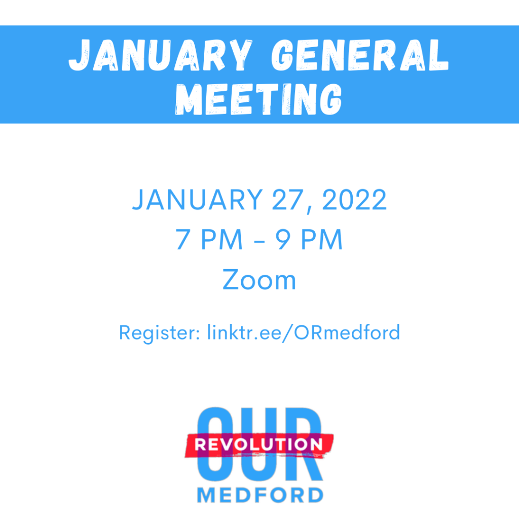 To submit items for future newsletters, please email us at ourrevolutionmedford@gmail.com! Acceptance will depend on alignment with the Our Revolution Medford People’s Platform, space constraints, and timing. Content will be edited for grammar and punctuation.